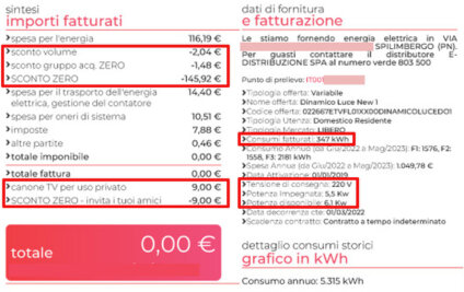 completamente azzerate di luce e gas.